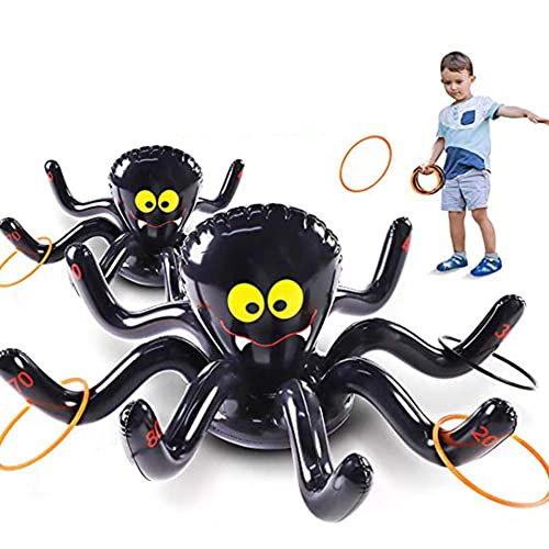 TOSISZ Juego de Juego de Lanzamiento de Anillos de arañas inflables de Halloween con 4 Anillos para Fiesta de Halloween Suministros para Fiestas en la Piscina Decoración de Vacaciones-predeterminado
