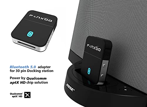 Fanxoo DockPro 30 pin Bluetooth 5.0 Adaptador 30 Pin aptX HD Adapter Receptor de Baja Latencia compatible para Bose Sounddock y iPhone iPod Music Docking Station