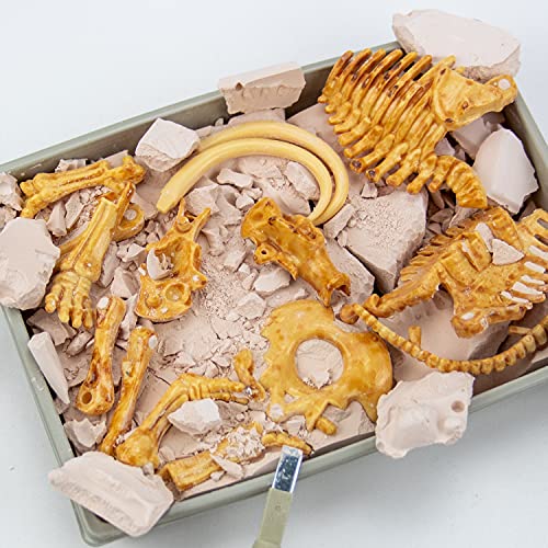 - 【KIT DE ARQUEOLOGÍA PARA NIÑOS】 Ningún kit de excavación de dinosaurios está completo si no tienen las mejores herramientas de excavación. Este kit de fósiles incluye todas las herramientas de arqueología que necesita para excavar su fósil: 1 bloque de excavación, 1 cincel de fósiles, 1 martillo de fósiles