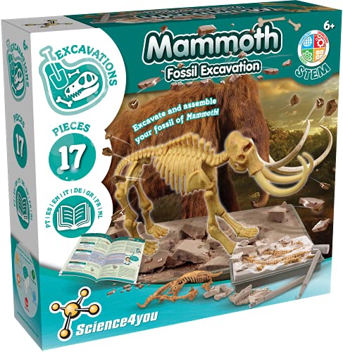 Science4you - Mamut Excavaciones Fósiles - Dinosaurios para Niños 6+ Años - Excava 17 Fosiles con Este Juego Arqueologia, Set de Paleontologo, Ciencia y Juguetes para Niños +6 Años