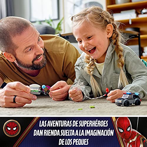 - El juguete de construcción para niños a partir de 4 años LEGO Marvel Spider-Man vs. Ataque del Dron de Mysterio tiene un todoterreno construible, un rubí robado y un dron armado
