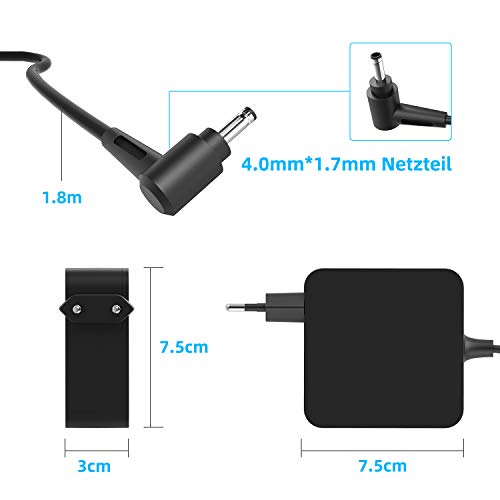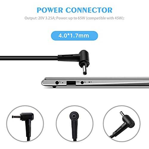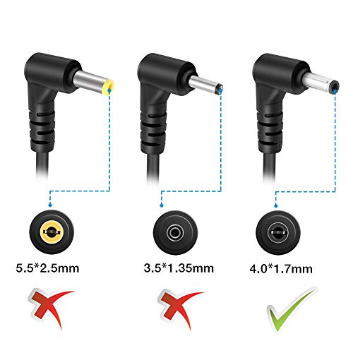 - Especificaciones de energía: Entrada: 100-240 V, 1,5 A, 50-60 Hz; Salida: 20V 3,25A; Potencia: Máximo 65 W (compatible con 45 W); tamaño del conector 4,0 mm x 1,7 mm; (Verifique antes de comprar). El paquete incluye: 1 adaptador de CA de 65 W, 1 enchufe de la UE, 1 manual de instrucciones.