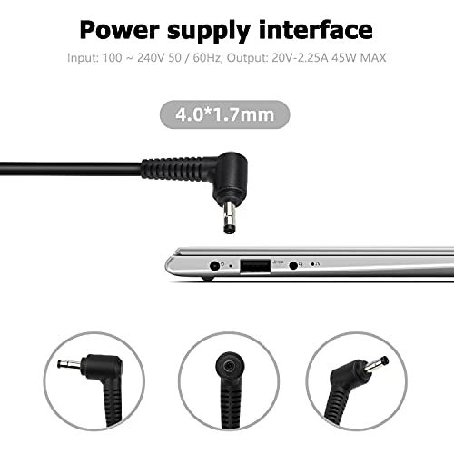 - Entrada: 100-240V, 1.5A, 50/60Hz; Salida: 20V, 2.25A, 45W; Longitud del cable: 4.92 pies; Tamaño del enchufe: 4.0 * 1.7 mm. Verifique el modelo de su máquina y el tamaño de la interfaz de carga original antes de comprar. (Nota: No es compatible con Lenovo Ideapad 100S-11IBY, MIIX 310-10, MIIX 320, MIIX 300, MIIX 310 de 5V 4A).
