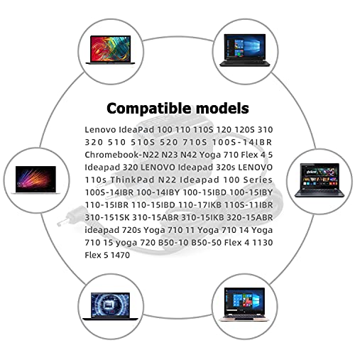 - ✅【Compatible】: Lenovo Ideapad Yoga 100 110 110S 120 120S 130 100-14IBY 100-14IBD 100-15IBY 100-15IBD 100S-14IB 100S-14IBR 110-15ISK 110-15IBR 110-15ACL 110-15AST 110-17IKB 110-17ISK 110S-11IBR 120S-11IAP 130-14IKB 130-15IKB 130-15AST S130 S145 S340 S130-11IGM S130-14IGM; Lenovo Essential V145 V155 V320 V340, Lenovo Chromebook N21 N22 N23 N42 (NON N23 Yoga); Lenovo Flex 4 5 6, 4-1130 4-1470 5-1470 5-1480 1580 B50-10 6-11IGM 6-14IKB 6-14ARR, Adaptador PC portátil Lenovo