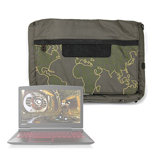 DURAGADGET Bolso con Bandolera Verde con Mapamundi para Portátil Lenovo ThinkPad L570, ThinkPad T570, Legion Y520 - con Múltiples Bolsillos