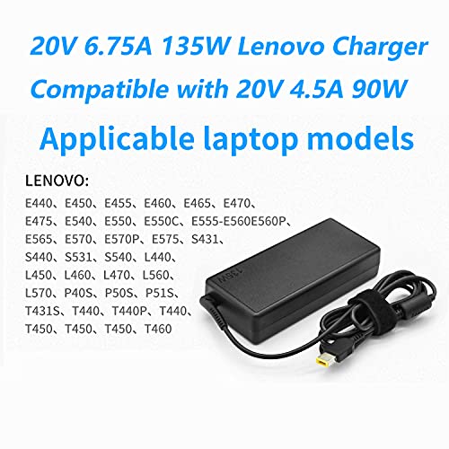 WHSTELENI 135W Cargador Portatil para Lenovo ADL135NDC3A ADL135NLC3A ADL135NCC3A Thinkpad T440P T450P T460P T470P T540P T550P W540 W550 Workstation Legion Y7000 Y520 Alimentación Adaptador