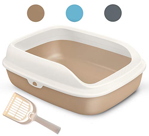 BPS Bandeja Gatos Gatitos Aseo Arenero Abierto para Mascotas Gatos Bandeja Sanitaria Plástica con Pala 3 Tamaños y Colores para Elegir (L, Marrón) BPS-5595MA