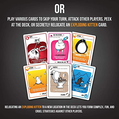 - Same Exploding Kittens madness, but with card art much too horrible/incredible to include in a kid-friendly version. Do NOT buy for children, unless you're ready to have some weird conversations.