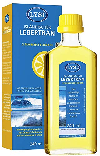 LYSI Cod Liver Oil Rich in Omega 3, Natural Vitamins, Lemon Flavour 240ml, for Immune System, Comes from Fresh Waters of Iceland