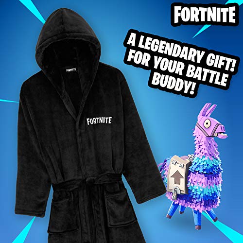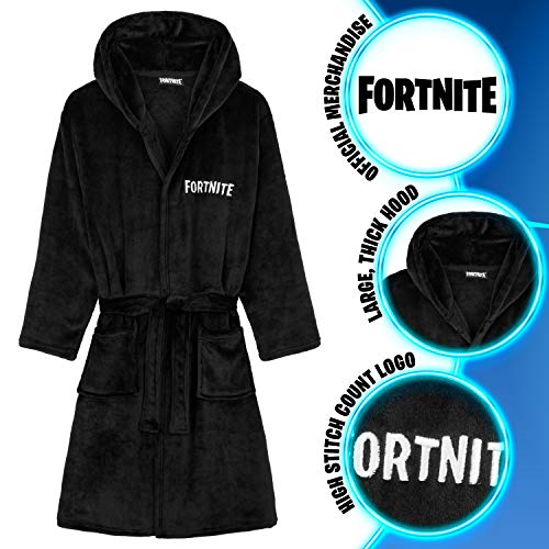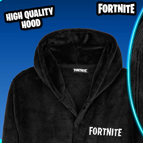 Fortnite Bata Forro Polar Niño, Albornoz Niño con Capucha y Cinturon, Batas de Casa Suaves, Regalos Para Niños y Adolescentes Edad 7-14 Años (Negro, 9-10 años)