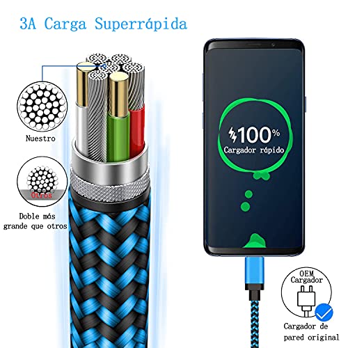 Aioneus Cable USB Tipo C, 3Pack [1M+1M+1M ] 3A Cargador Tipo C Nylon Carga Rápida y Sincronización Cable USB C para Samsung Galaxy A71 A51 A50 S10 S9 S8, Xiaomi Redmi note 9 8 7, Huawei P30 P20 Lite