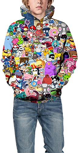 - Diseño: la Impresión de esta sudadera tiene larga duración cuyos colores siguen siendo hermosos y fuertes incluso después de varios lavados. El estilo es de manga larga. Es un pullover de espesor medio, suave, cómodo y con buena permeabilidad al aire. Hay un blosillo grande en la frente para llevar los necesidos y mantener las manos calientes. Está con gráficos de impresión en 3D fashionales y divertidos.