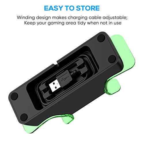 - Ahorra tiempo y espacio: Diseño de clic, basta con conectar los controladores XSX o XSS a la estación de carga, es fácil de usar y puede cargar completamente dos controladores simultáneamente en 4-6 horas. No hay necesidad de esperar más tiempo. El cable USB se puede ocultar cuando no está en uso. (PAS para Xbox One / One S / One X / One Elite )