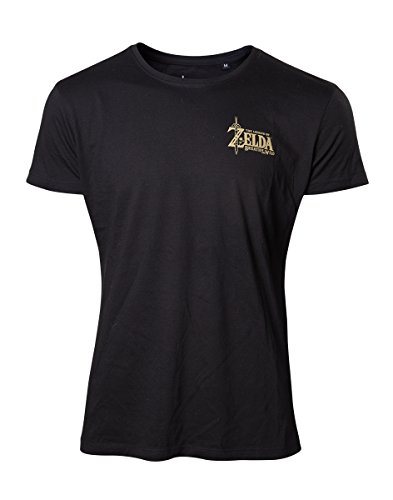The Legend of Zelda Breath of The Wild - Golden Game Logo Camiseta Negro XL, 100% algodón, Corte Normal