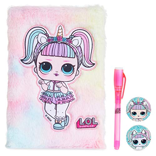 L.O.L. Surprise! Diario Secreto para NiƱa, Libretas Bonitas de Peluche con la MuƱeca LOL Unicornio y Boli con Tinta Invisible, Libreta PequeƱa, Diarios de Peluche, Regalos para NiƱas