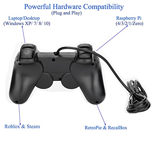 Controladores Juegos con Cable USB para PC/Raspberry Pi Mando Remoto Conecta y Reproduce Choque Doble Gamepad Joystick para Escritorio y Portátil PC(Windows XP/7/8/10) & Roblox/Steam/RetroPie/RecalBox