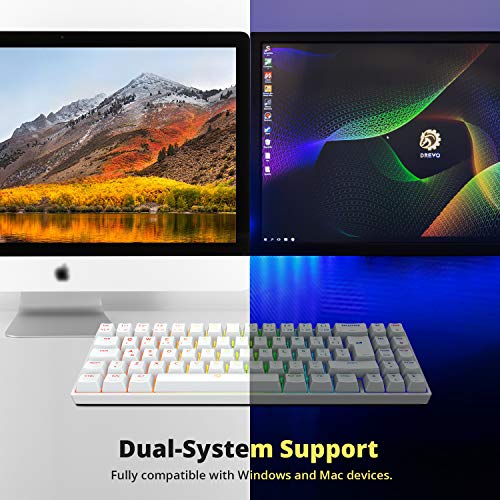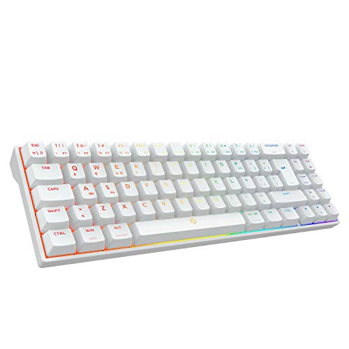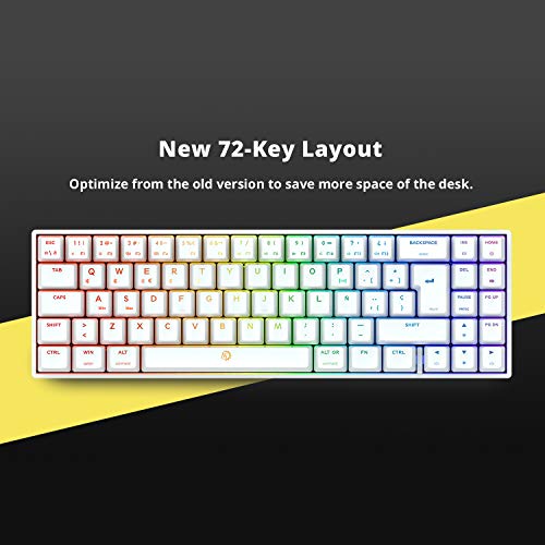 DREVO Calibur V2 Pro Teclado mecánico para Juegos RGB inalámbrico Mediante Bluetooth 5.1 con Cable USB-C extraíble, Compacto de 72 Teclas Distribución en español(Outemu Azul,Blanco)