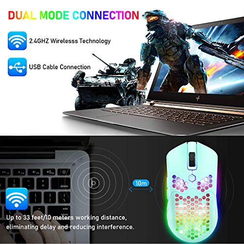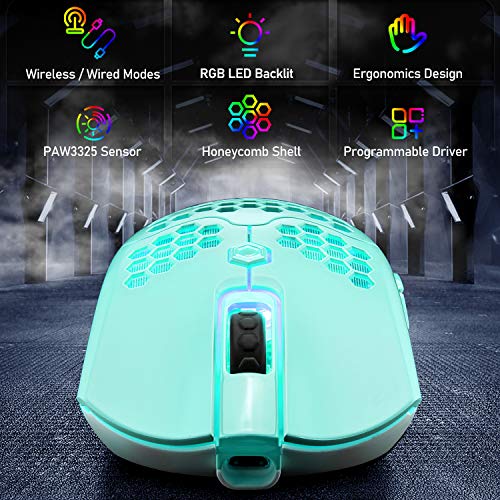 Ratón ligero para juegos inalámbrico/con cable, 800 mAh recargable, PMW3325, 12000 DPI, 16 RGB retroiluminado, diseño de carcasa de nido de abeja de 69 G, 7 botones programables para jugadores de PC