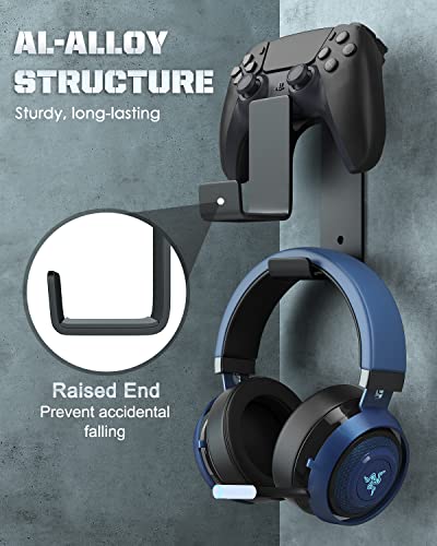 MoKo Soporte para Controlador de Juegos, Soporte Compatible con PS3, PS4, PS5, PC, STEAM, Switch, Universal Armadura de Aleación de Aluminio de Pared para Controlador Dual y Auriculares - Negro
