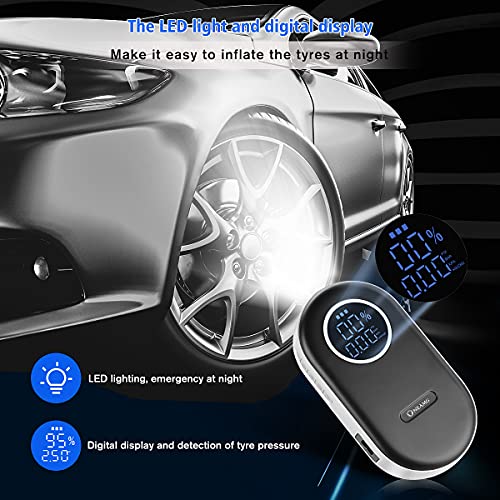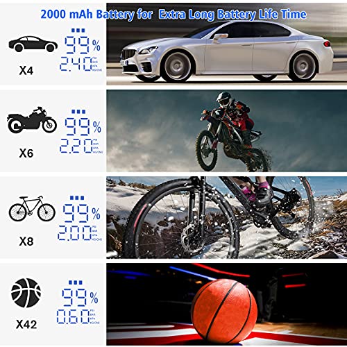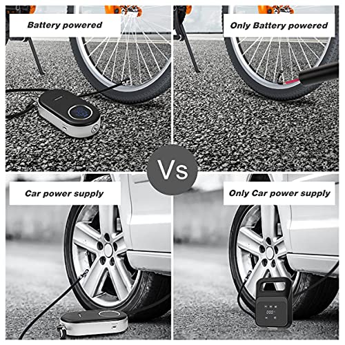 - ⚽【Luces LED y Pantalla LCD】: El mini compresor de aire portátil también está equipado con luces LED que se pueden usar en la oscuridad. La pantalla LCD puede leer claramente los números durante la noche o durante el día. inflador ruedas coche tiene un efecto de visualización muy brillante.