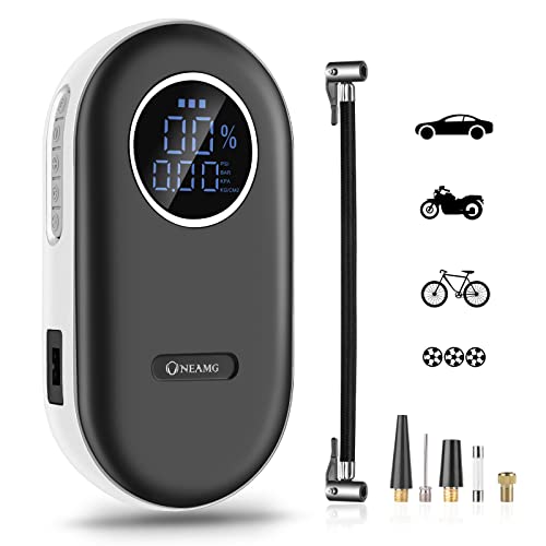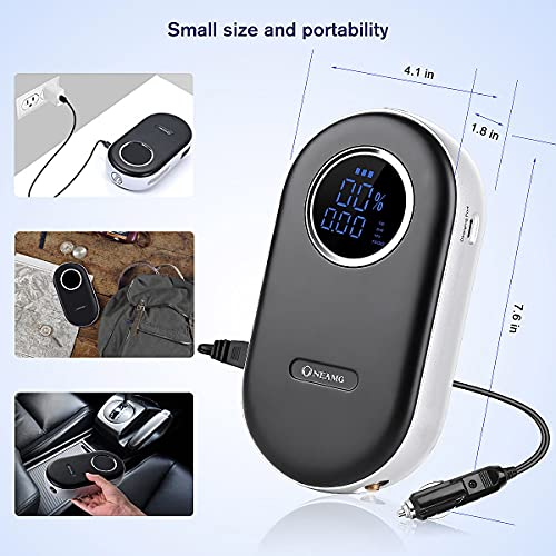 OneAmg Compresor de Aire Portatil, Inflador Ruedas Coche Inalámbrico con Batería Recargable de 2000 mAh, Mini Compresor Aire Coche de 12V 150 PSI con luz LED, Inflador Eléctrico para Bici,Moto, Coche