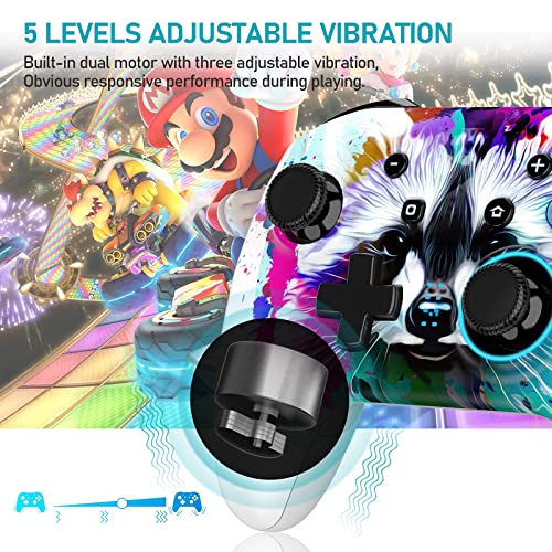 - Control de Movimiento y Motor Dual: El controlador para switch gamepad tiene un motor dual incorporado que te brinda comentarios de juego más frescos y realistas; Con un acelerómetro incorporado y un giroscopio de 6 ejes que aumenta la precisión, el controlador Switch Pro te hace sentir más cómodo con los detalles del juego mientras juegas.