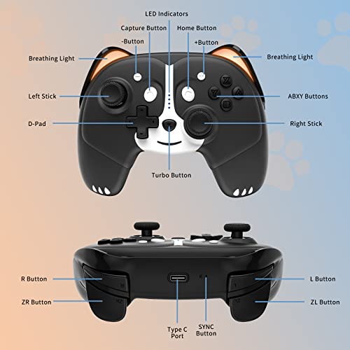 Zexrow Mando para Nintendo Switch, Mando Pro Controller Mando pc Inalambrico con Función Gyro Axis/Dual Shock y Turbo Compatible con Nintendo Switch