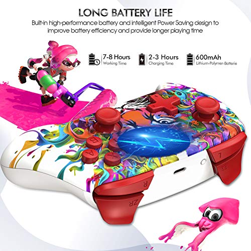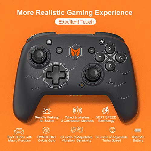 ECCHTPOOWER Mando para Switch/ Lite/ Oled, Wireless Bluetooth con Turbo, Función de Reactivar la Switch, Giroscopio, Vibración Ajustable, 500mAh Batería, Botón de Sincronización,4 Botones Traseros