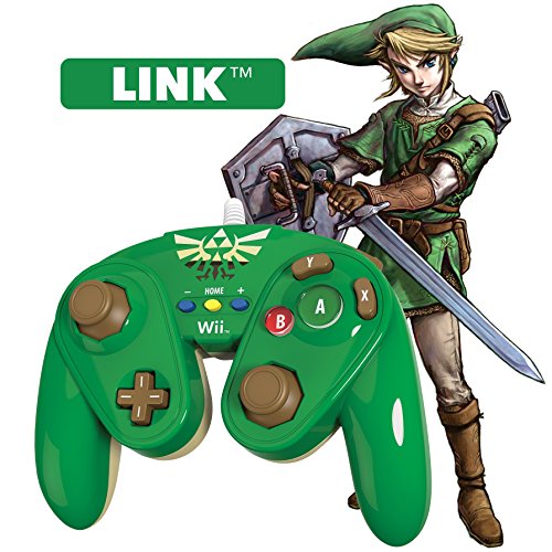 PDP - Mando Fight Pad Con Cable, Diseño Link (Nintendo Wii U)