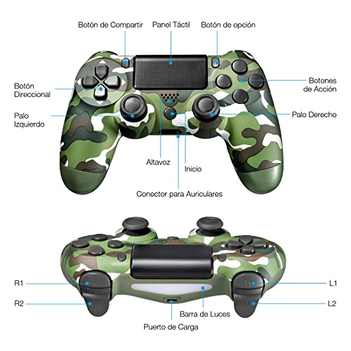 - ▶【CONEXIÓN INALÁMBRICO ESTABLE】: el mando Playstation 4 se puede conectar rápidamente a la consola de Playstation4 a través de Bluetooth. Lo que es fácil de operar y la señal de conexión es establedentro de los 8 metros sin demora ni conexión, se puede permitirle difrutar de juegos dentro de un cierto rango. Es compatible con PlayStation4, PlayStation4 Pro, PC win7 / 8 / 8.1 / 10, y PSTV/ SMART TV