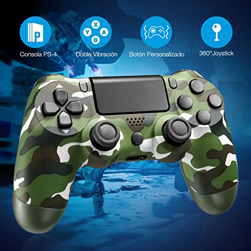 Mando para PS4, Mando Inalámbrico PS4 Controlador Bluetooth Gamepad con Doble Vibración Recargable Control Remoto de 6 Ejes Choque G-Sensor con TouchPad y Conector de Audio