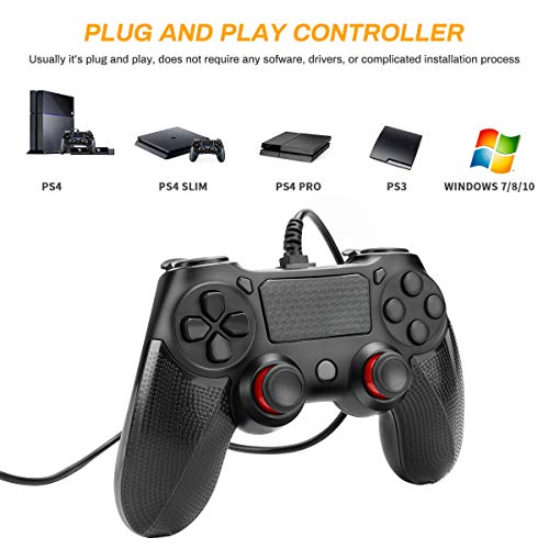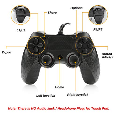 - ?【Diseño exclusivo 】 El controlador está especialmente diseñado para la consola PlayStation 4 y ajusta el programa de controlador Dual Shock 4 con cable. Es un reemplazo perfecto para el Sony Dualshock 4-Gampad a un precio mucho más bajo.