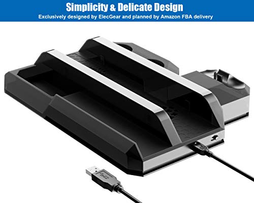 Soporte Vertical para PlayStation - ElecGear PSVR Stand, Ventilador de Refrigeración, Estación de carga cargador de controlador DualShock y Move Motion Controller Mando Charger para PS4, Slim y Pro