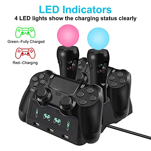 Thlevel Cargador Mando para PS4, Estación de Carga para PS4 / PS VR / Move Controller, 4 en 1 Estación de Carga con LED Indicador, Base de Carga Dual para DualShock 4 Gamepad y PS Move