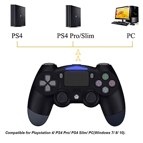 - [Excelente Mando Inalámbrico PS4] - Reemplazo del mando original de Sony playstation 4. compatible con PS4/ PS4 Pro/ PS4 Slim/ PC(Windows 7/8/10), y se puede actualizar. el controlador Bluetooth PS4 puede conectar hasta 4 asas al mismo tiempo.