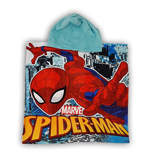Toalla de mano de algodón, poncho con capucha, 55 x 110 cm, diseño de Spiderman, color azul