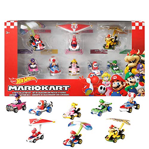 Hot Wheels Mario Kart Set de colección con 8 mini coches de juguete con personaje, regalo para niños +3 años (Mattel GXY11)