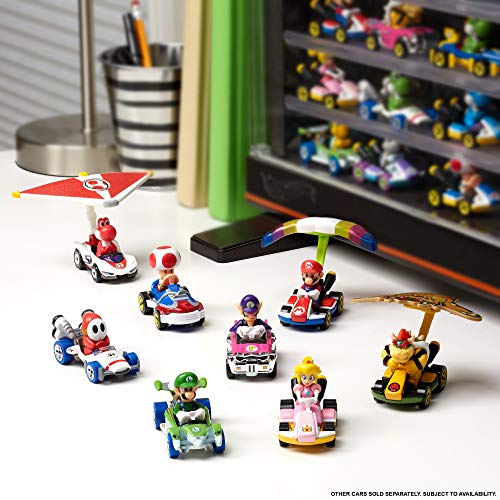 - Los fans de Mario Kart reconocerán al instante al popular personaje de la famosa saga de videojuegos de carreras en este conjunto de juego de Mario Kart de Hot Wheels.