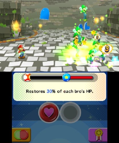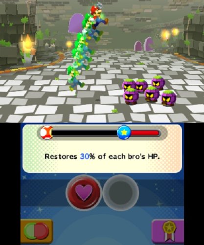 - 3 personajes controlables: Mario, Luigi y Paper Mario