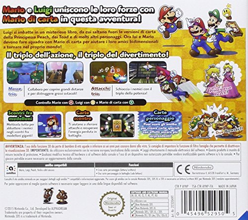 - 3 personajes controlables: Mario, Luigi y Paper Mario