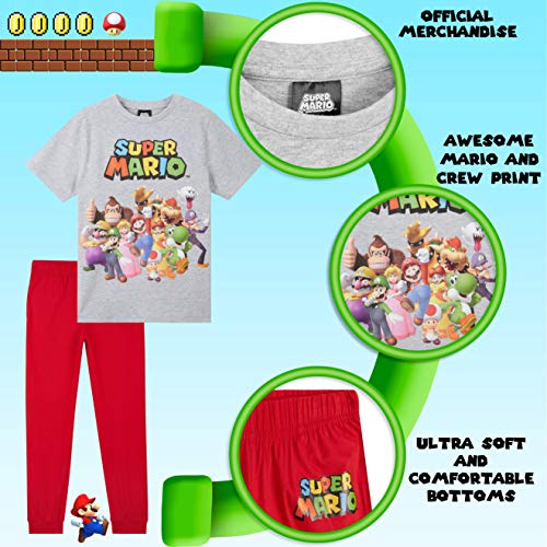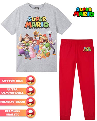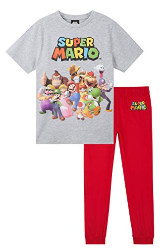 - SUPER MARIO PIJAMAS NIÑOS: Este pijama niño viene con una camiseta gris con un estampado de todos los personajes principales Wario, Donkey Kong, Peach, Toad, Daisy, Bowser, Yoshi, Boo, Waluigi, Mario y Luigi. El pantalón largo con cintura elástica es rojo con el logo de super mario en la cadera a juego con el de la camiseta. No te pierdas este pijama de algodón súper suave para niños. Son perfectos para usar durante todo el año también como ropa para estar en casa o para dormir