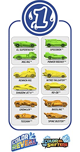 - ¡No dejarás de sorprenderte con los cambios de color! Solo tienes que sumergir el coche Hot Wheels en agua fría para ver otra decoración y diseño, que podrás revertir si lo metes de nuevo en agua caliente. Cambia de aspecto siempre que quieras alternando entre agua fría y caliente. Incluye 2 coches, pero es como tener 4.