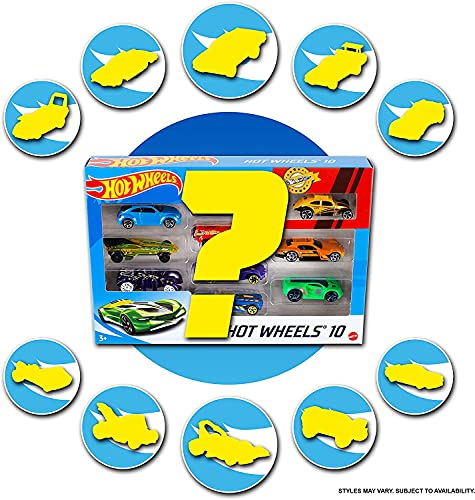 Hot Wheels Pack de 10 vehículos, coches de juguete (modelos surtidos) (Mattel 54886)