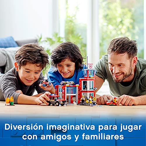 - Incluye 4 minifiguras LEGO City: un jefe de bomberos y 3 bomberos, y una figura del perro del Parque de Bomberos.
