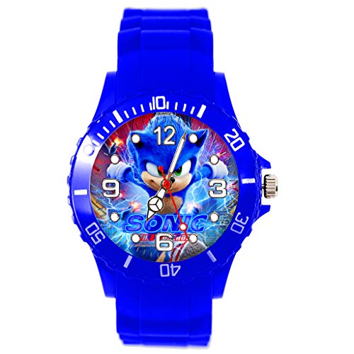 Sonic The Hedgehog E4 - Reloj de cuarzo redondo de silicona azul