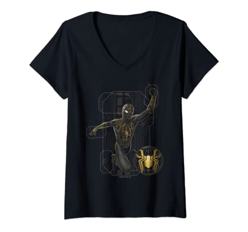 Mujer Marvel Spider-Man: No Way Home Black and Gold Suit in Action Camiseta Cuello V