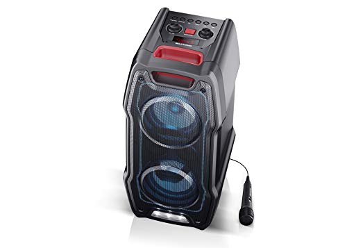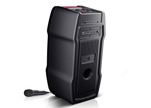 SHARP PS-929 Party Speaker Boombox con función Karaoke, microfono Incluido, TWS, Bluetooth 2 Puertos USB, 2 Puertos 6.3 mm, Luces Multicolor más luz estroboscópica, 180W de Potencia y bateria Integra