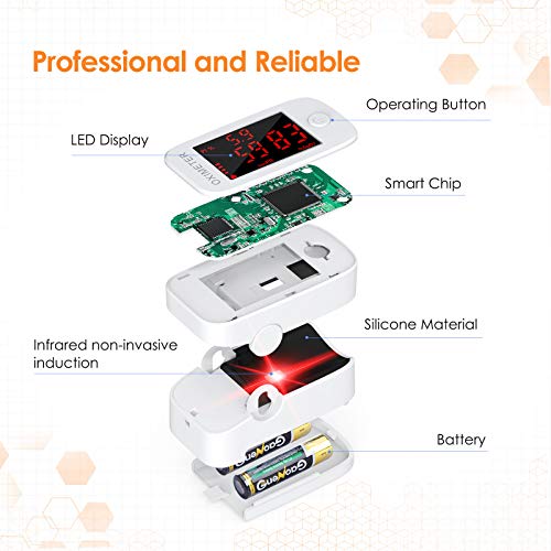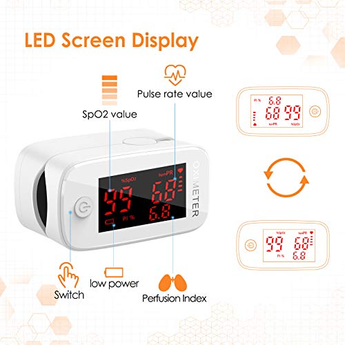 Oxímetro de Dedo KKmier Oxímetro de Pulso Profesional con Pantalla LED, Oxímetro 3 en 1 para medir la saturación de SpO2, (oxígeno en la sangre) PR (frecuencia del pulso) y PI para Adultos y Niños