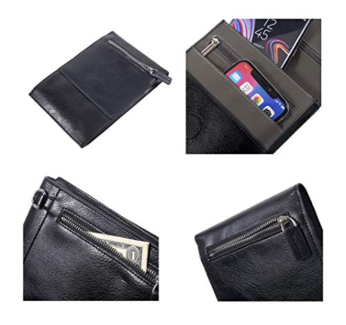 - Diseño multifunción, 3 compartimentos y 4 bolsillos con cremallera, puede guardar su teléfono, efectivo, tarjetas, facturas, etc. Cierre magnético seguro.