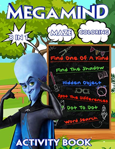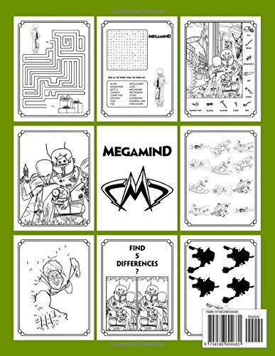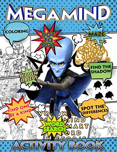 Megamind Activity Book: Wonderful Spot Differences, Coloring, Maze, Find Shadow, Word Search, Hidden Objects, One Of A Kind, Dot To Dot Activities Books For Adults, Kids